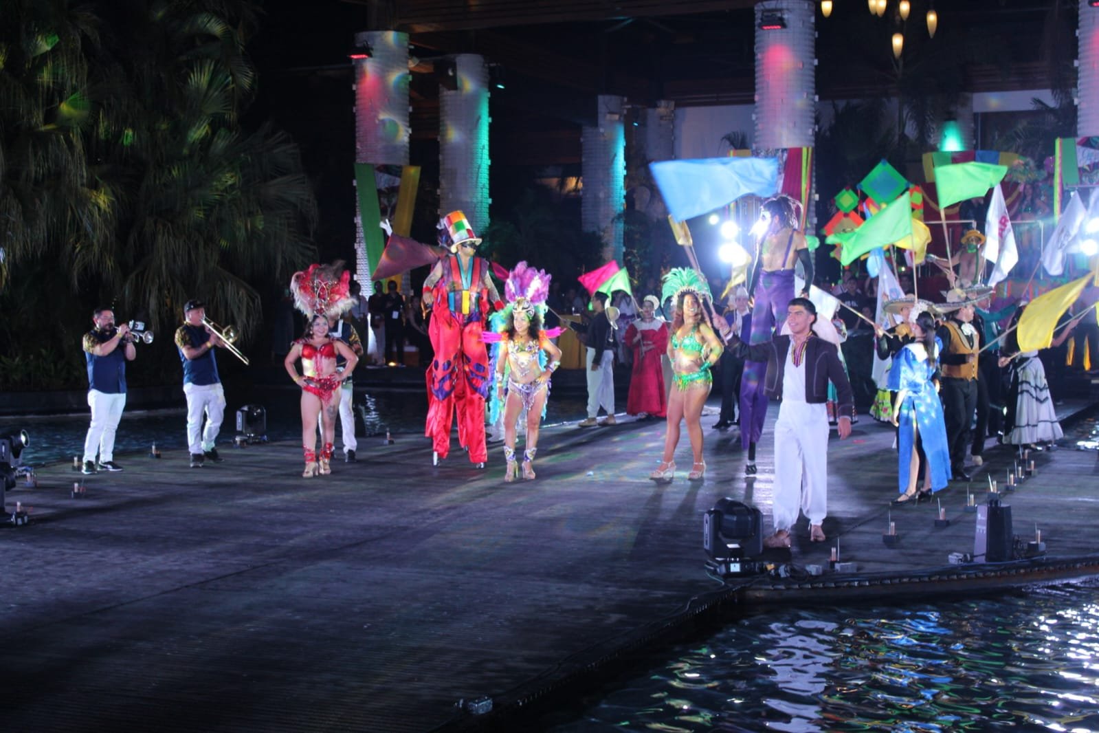 Con un despliegue impresionante de luces, sonidos y bailarines, la noche comenzó con un tema de carnaval que encantó a todos los presentes.
