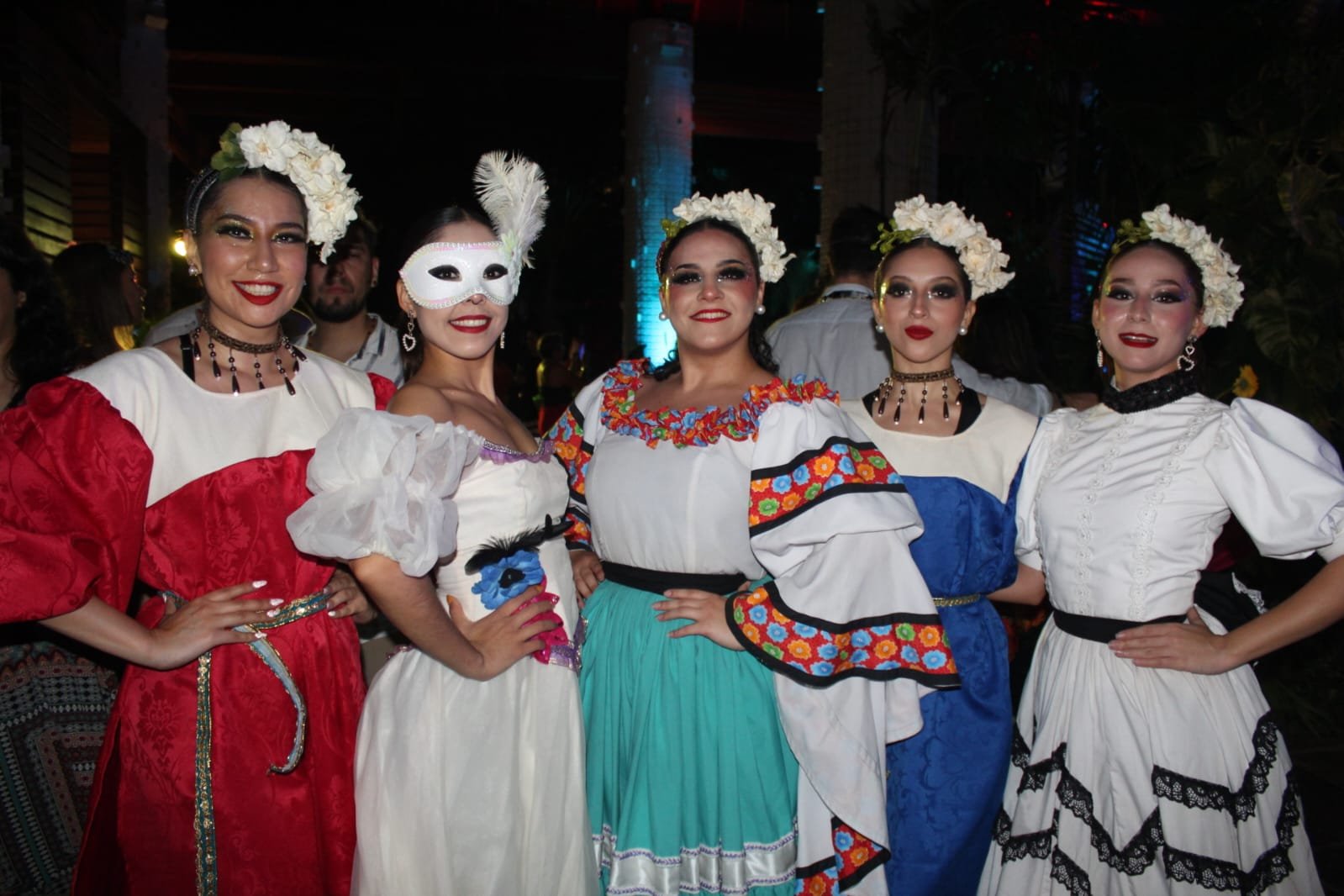 Los invitados, llenos de entusiasmo, se sumaron al espíritu de la temática luciendo atuendos coloridos, llenos de brillo, máscaras y plumas, evocando el espíritu de carnaval que se apoderó de este paraíso de la costa nacional.