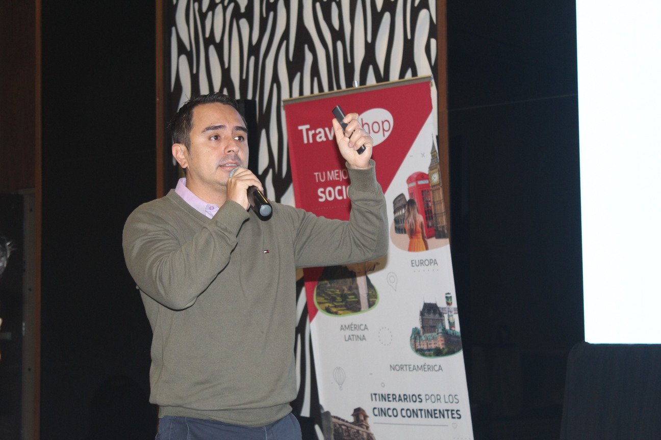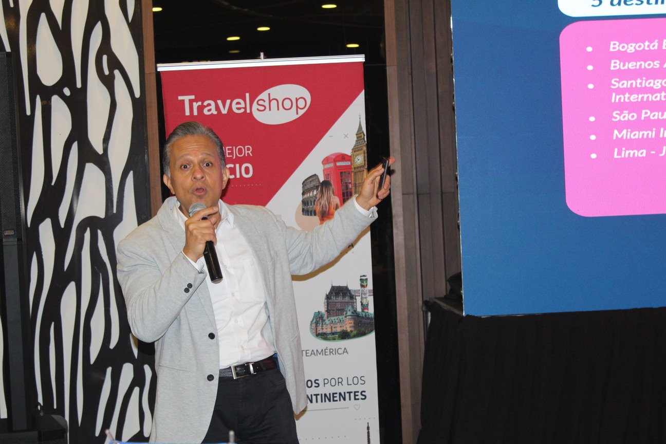 Con una sala llena de profesionales del turismo, Miguel Galica, CEO de Travel Shop, dio la bienvenida y abrió con una gran noticia: entre los asistentes se sorteará un lugar para el vuelo inaugural de Air Canada Guadalajara–Toronto previsto para noviembre.
