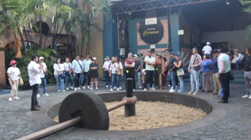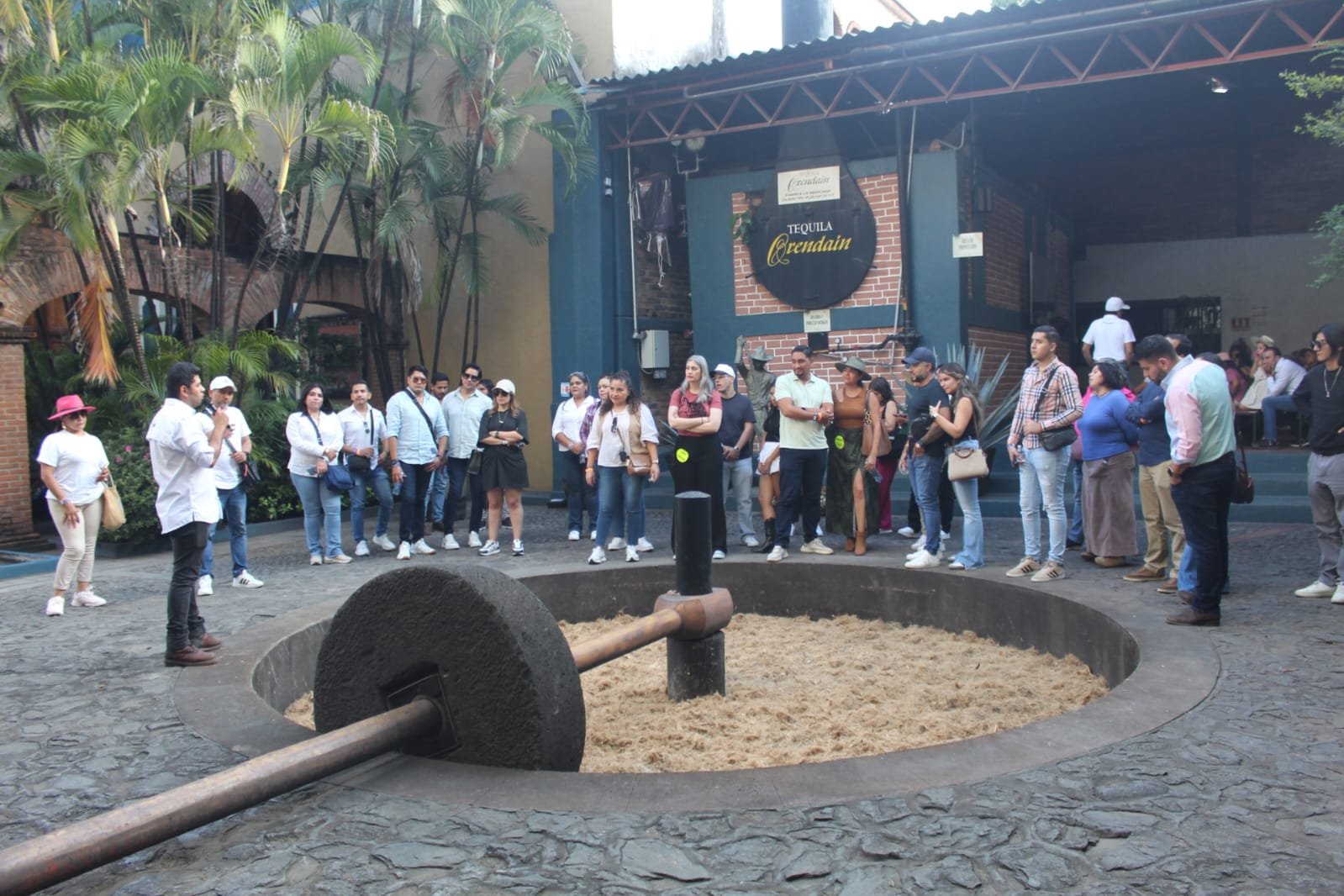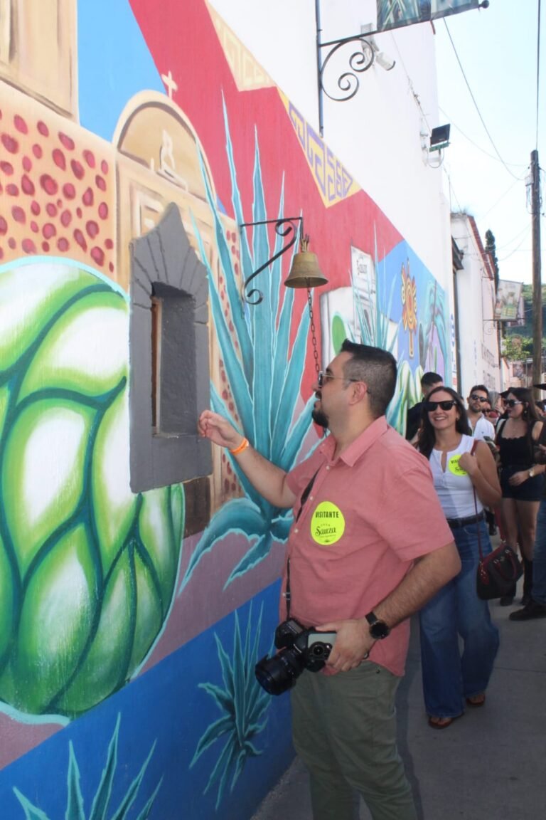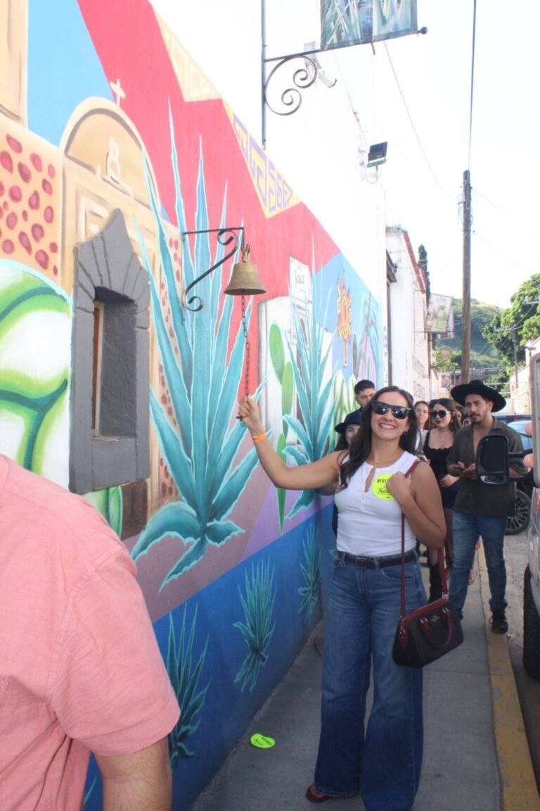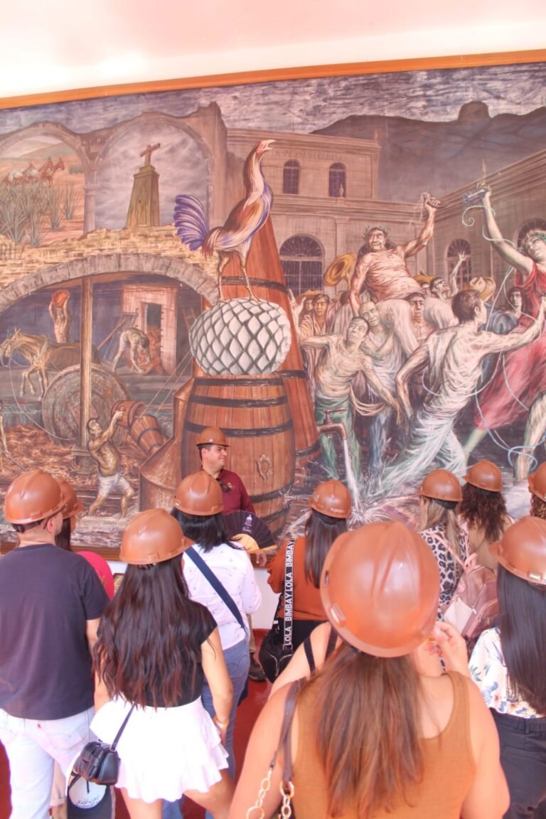 La jornada continuó en la bodega de maduración de Sauza, un espacio reservado especialmente para nuestro grupo, donde conocimos de cerca el proceso artesanal que da vida a esta emblemática bebida mexicana. Entre aromas, barricas y anécdotas, culminamos el recorrido tocando la Campana de la Fortuna, tradición que invita a brindar con un refrescante cantarito.